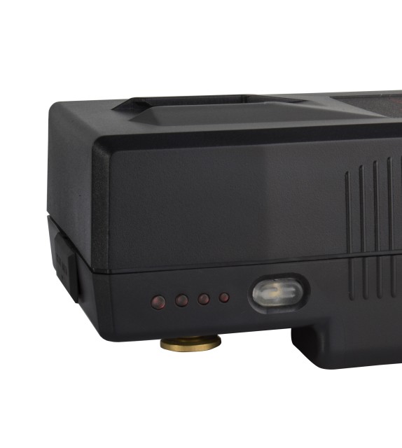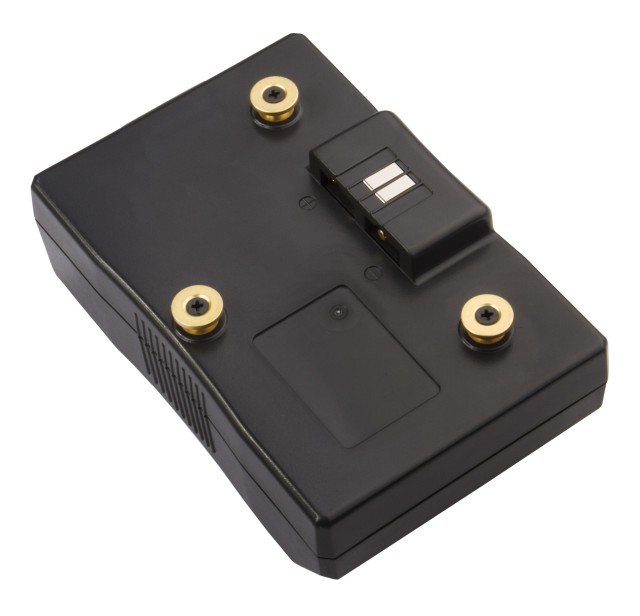 Der AntonBauer S-8083A ist ein wiederaufladbarer Lithium-Ionen-Akkupack für professionelle Videokameras mit goldener Halterung und kompaktem Design in kleinerem Format.