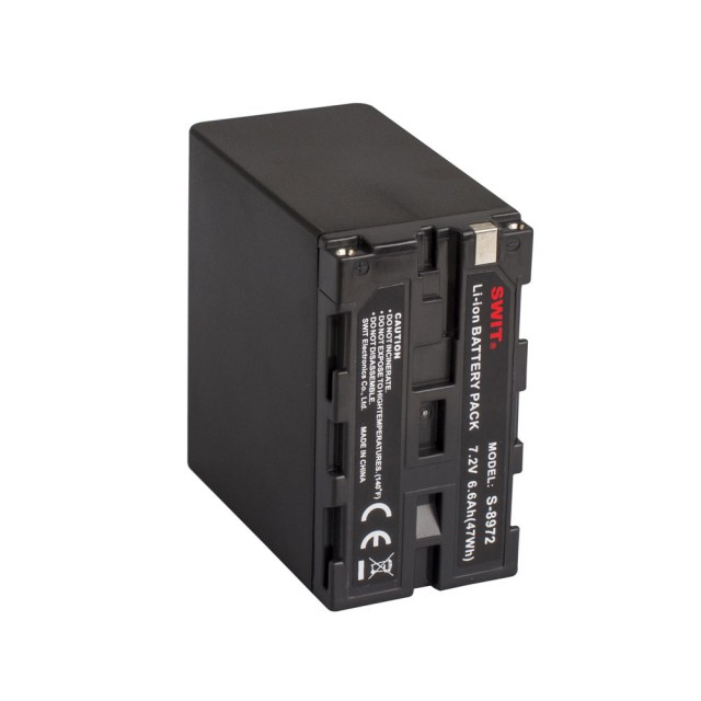 Der S-8972 kann mit dem SWIT Zweikanal-Ladegerät S-3602F oder dem 4-Kanal-Ladegerät LC-D421 geladen werden. Es dauert etwa 4 Stunden und 30 Minuten, um von leer auf 100% zu laden.