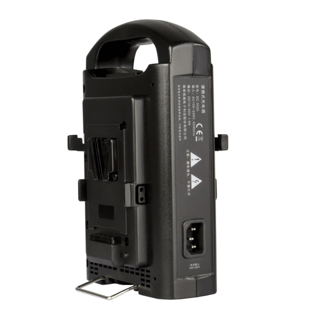 The SC-302S has 2 V-mount plates and can charge 2 batteries one-by-one sequentially. The charging output is DC 14-20V, 1.9A.