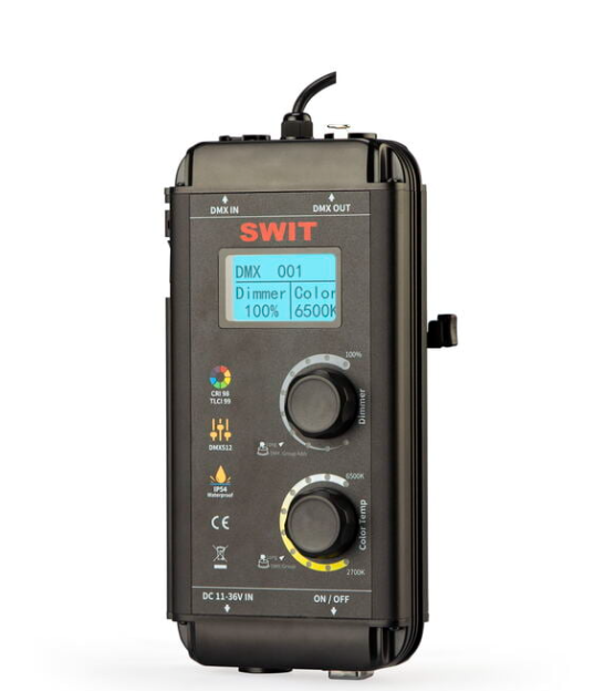 Der SWIT SL Controller ist ein spezieller DMX-Dimmer und Farbtemperaturregler für die LED-Leuchten SL-100P und SL-150P. Er ermöglicht eine präzise und intuitive Steuerung von Helligkeit und Farbtemperatur über ein übersichtliches LCD-Display.
