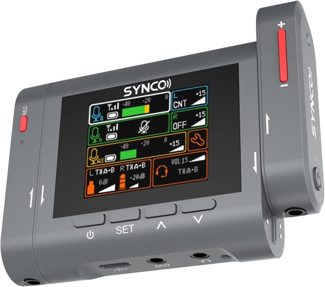 Malý bezdrátový nahrávací mikrofon SYNCO G3 je dobře zpracovaný pro filmaře na cestách. Párování mezi vysílači a přijímačem je automatické a bezpečné. Úžasná nastavení, jako je funkce Sound Track Management, se ovládají pouze 4 tlačítky. Displej LCD s úhlopříčkou 1,8 palce zobrazuje vše, co potřebujete přehledně vidět. To vše usnadňuje ovládání a sledování nahrávání.