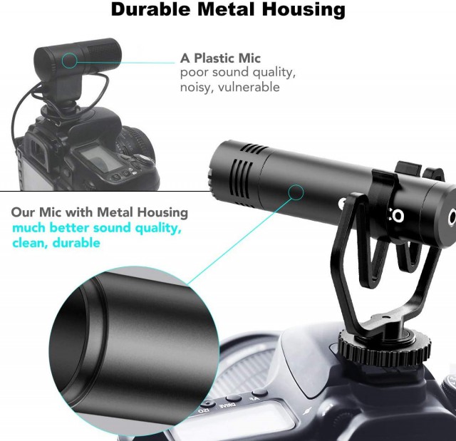 Das spezielle Elektret-Kameramikrofon mit Nierencharakteristik für DSLR/DSLM bietet einen TRS/TRRS 3,5 mm-Ausgang, eine gepolsterte Halterung mit Blitzfuß und eine Miniaturgröße von 22 x 81 mm mit einem Gewicht von nur 26 g! S/N 76 dB, Empfindlichkeit -42 dB@1 kHz.