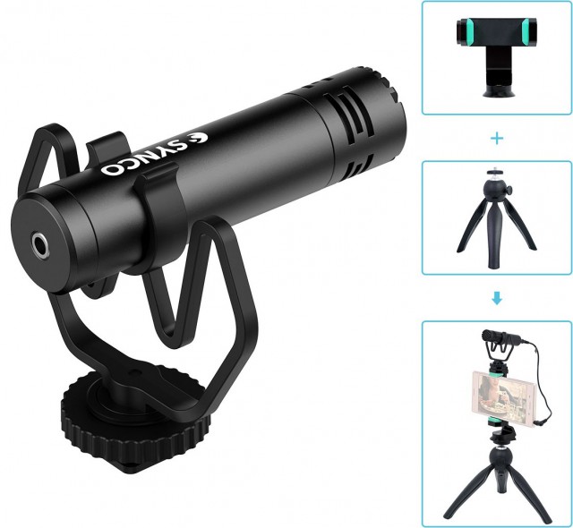 Set bestehend aus Synco Mic-M1 Mikrofon, gepolstertem Mikrofonhalter, Handyhalter und Miniatur-Klappstativ mit 360° Kugelkopf. Lösung für Streaming/Vlogging/YouTube... Das Mic-M1 Elektret-Kameramikrofon mit Nierencharakteristik bietet einen TRS/TRRS 3,5 mm Ausgang und eine Miniaturgröße von 22 x 81 mm bei einem Gewicht von nur 26 g! S/N 76 dB, Empfindlichkeit -42 dB@1 kHz.