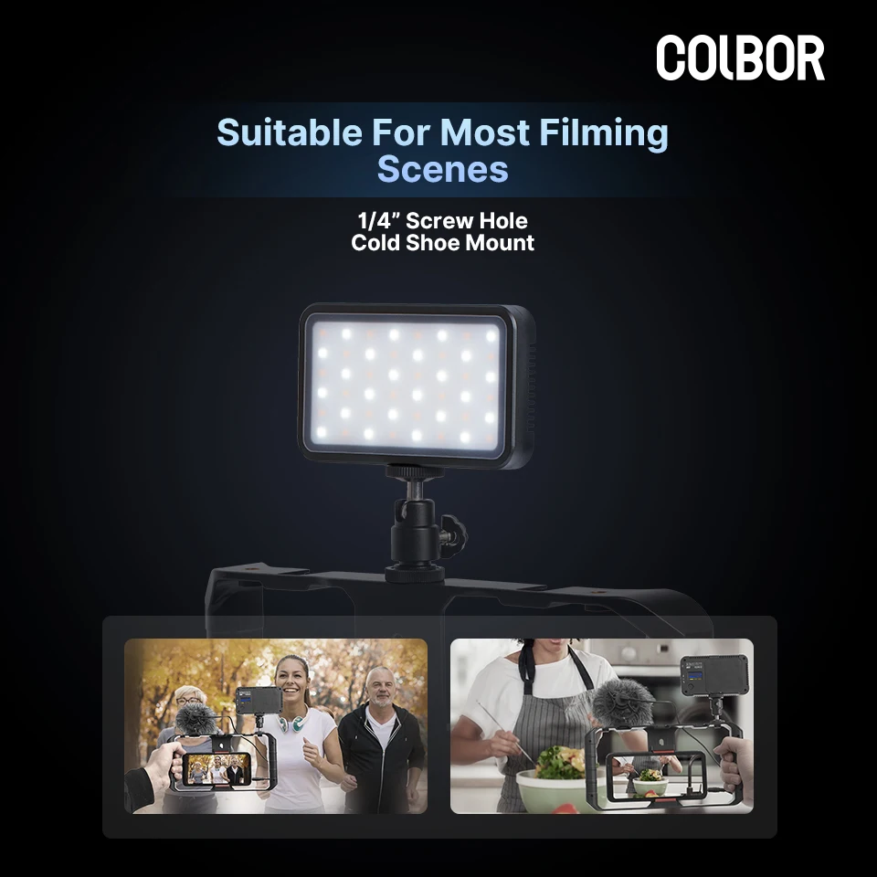 Die COLBOR PL5 Videoleuchte eignet sich nicht nur für mobile Geräte, sondern auch für Kameras und Camcorder. Es kann an Stativen und Rigs mit dem 1/4"-Schraubenloch an der Unterseite und einem kalten Schuhanschluss befestigt werden. Die breite Kompatibilität ist ideal für verschiedene Aufnahmeanlässe wie Youtube-Videos, Hochzeiten, Produktaufnahmen, Interviews, Sendungen und mehr.