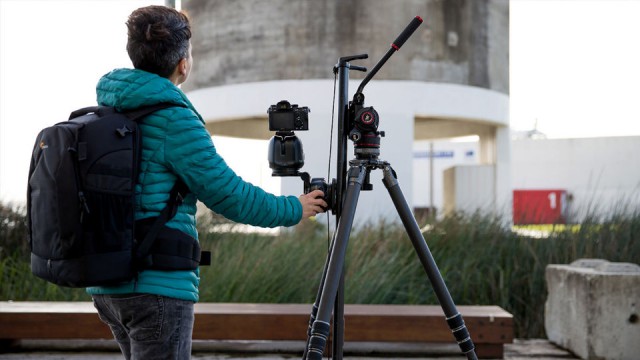 Mechanisches Zubehör für vertikale Zeitrafferaufnahmen, kompatibel mit manuellen und motorisierten Schiebern. Ermöglicht die Korrektur des Kamerahorizonts (bis zu 180° mit 0-90° Markierungen), wenn die Kamera auf einem Schieber montiert ist. Unterstützt Kamerabaugruppen mit einem maximalen Gewicht von 6 kg und bietet Standardgewinde 3/8-16'' und 1/4-20''.…