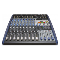 | Maximale Verstärkung | 74 dB (MIC zu MAIN OUT) 50 dB (MIC an INSERT OUT) 74 dB (MIC an SUB OUT) 75 dB (MIC an AUX 1/2 OUT) 24 dB (USB/SD an MAIN OUT) (alle EQs flach, PAN voll gegen den Uhrzeigersinn / voll im Uhrzeigersinn) |