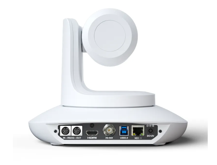 Die Netzwerkverbindung erfolgt über einen Gigabit-Ethernet-Anschluss mit PoE+-Unterstützung, sodass die Kamera über ein einziges Kabel mit Strom versorgt und gesteuert werden kann. Darüber hinaus bieten RS232-, RS485- und USB-Schnittstellen Kompatibilität mit VISCA und anderen Steuerungsprotokollen, was eine präzise Fernsteuerung der Kamera und die Integration in professionelle Steuerungssysteme ermöglicht.