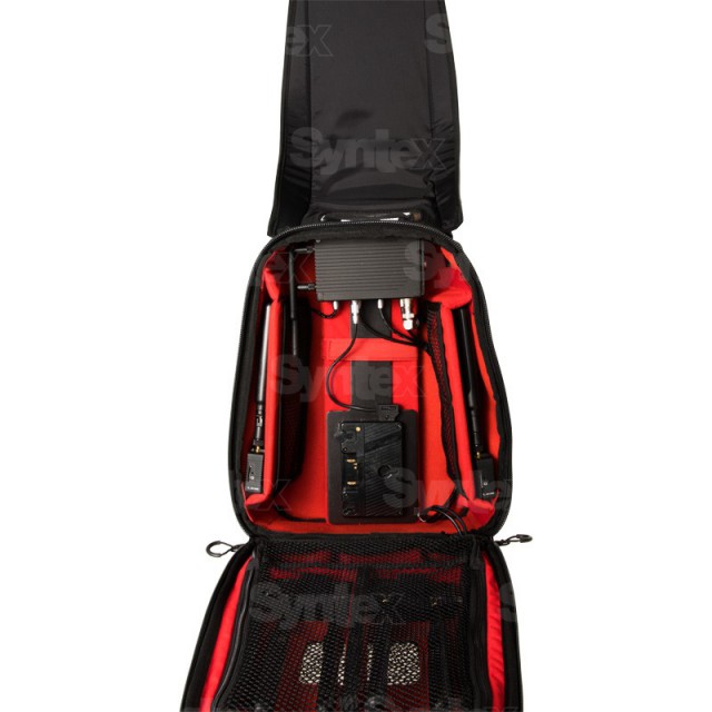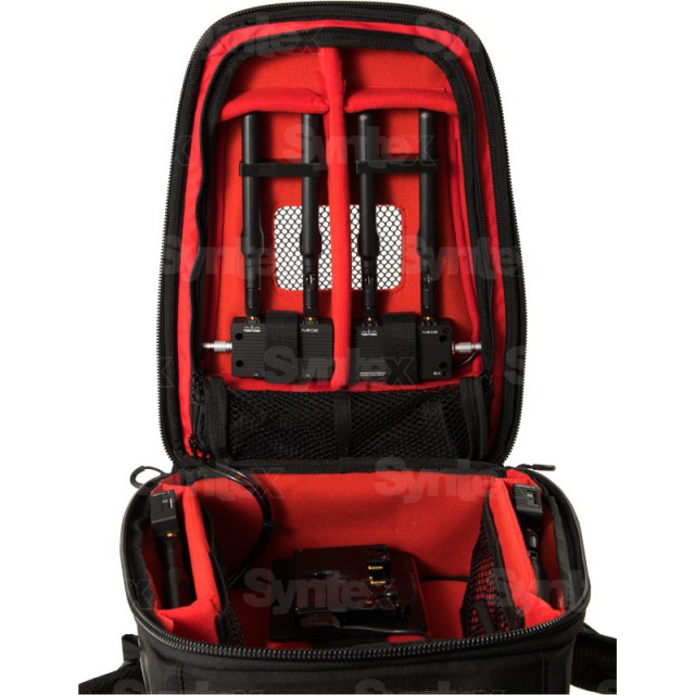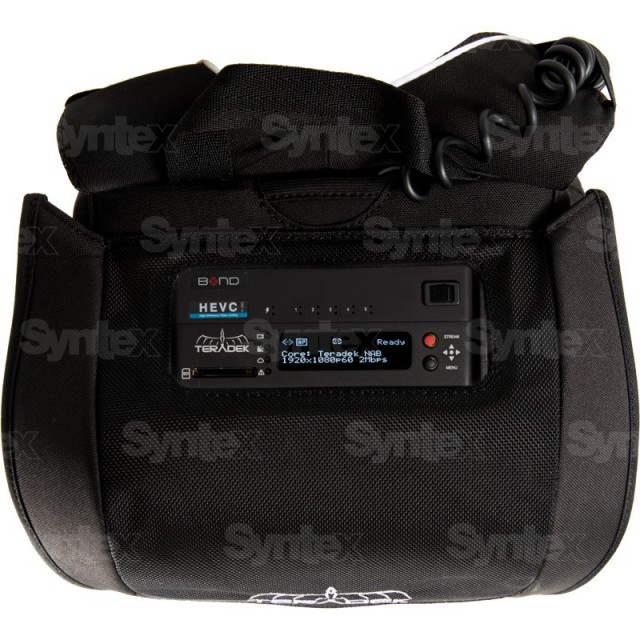 Der Bond 759 HEVC-Rucksack von Teradek enthält das Bond 757 Erweiterungsmodul mit Cube 755 Encoder, Node Cellular 4G LTE USB-Modem (Europa/Asien) und V-Mount-Platte.