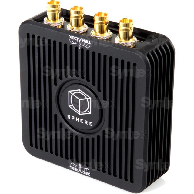 Teradek Sphere ist eine kompakte Lösung für die Überwachung und das Streaming von 360º-Videos von 4-Kamera-VR-Rigs auf mobilen iPad Pro-Geräten. Die unterstützte Ausgangsauflösung beträgt bis zu 4Kp24, die Eingangsauflösung 1080p30/i60. Die "Monitoring"-Varianten unterstützen die Videovorschau in einem lokalen Netzwerk, die "Monitoring/Streaming"-Varianten enthalten zusätzlich eine Streaming-Lizenz (die "Monitoring"-Varianten können jederzeit durch den Erwerb einer separaten Streaming-Lizenz erweitert werden)