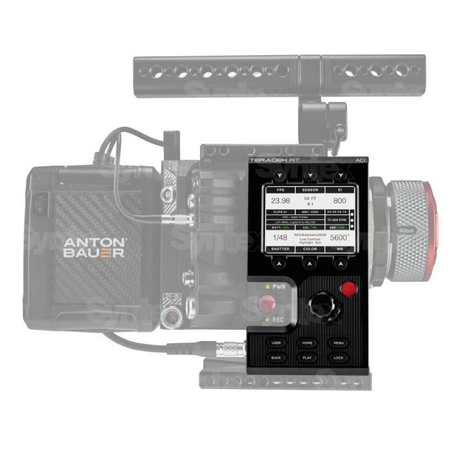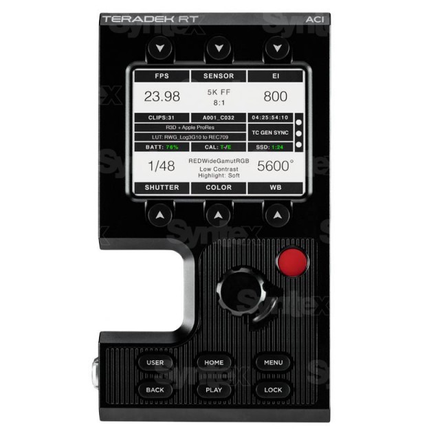 Assistant Camera Interface, Basisversion ohne Sender. Das ACI-Modul erleichtert die Steuerung und Verwaltung von RED-Kameras durch eine übersichtliche Softwareoberfläche und physische Bedienelemente. Er wird an der Seitenwand von RED DSMC2-Kameras angebracht und kann mit jedem DSMC2-E/A-Modul mit einem CRTL (RS232)-Anschluss verbunden werden.