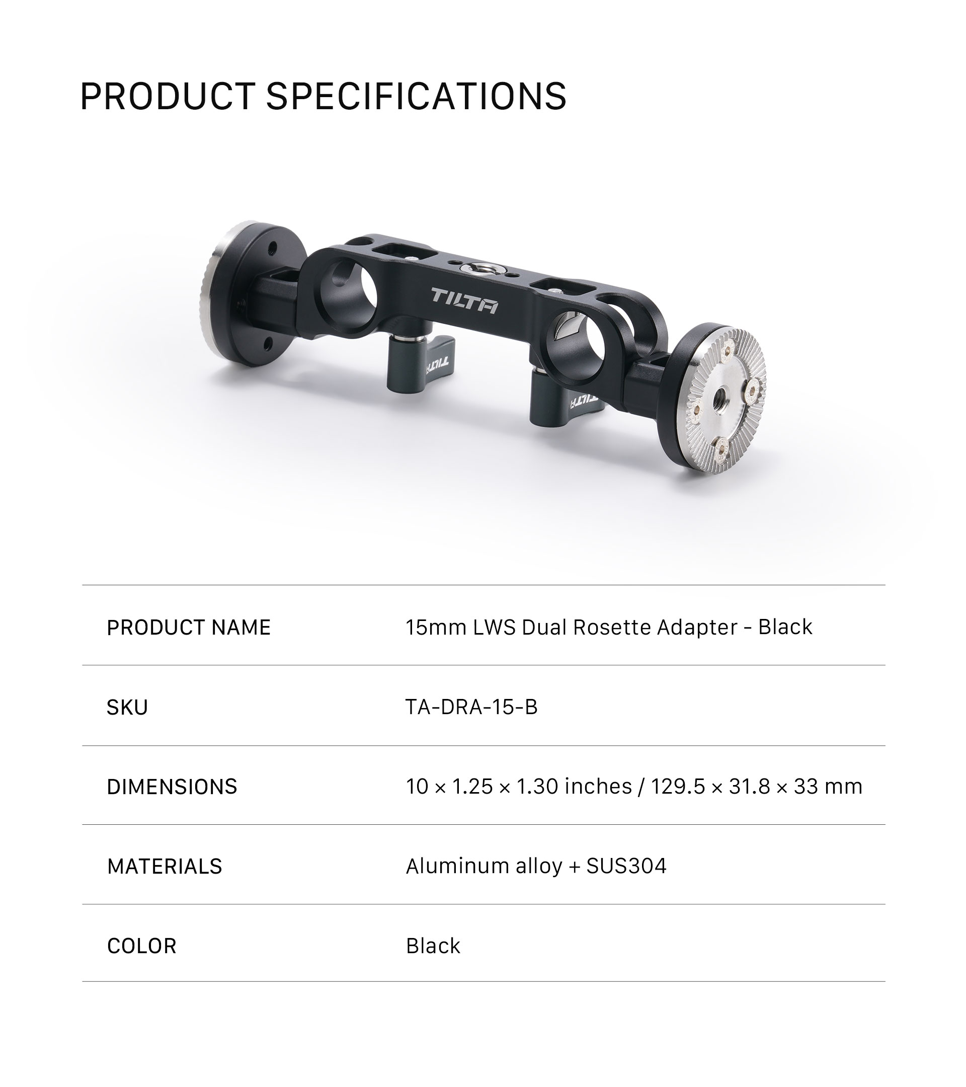 Wir stellen den 15mm LWS Dual Rosette Adapter vor. Dieser Adapter im Brückenstil wird über 15-mm-LWS-Stangen befestigt und ermöglicht es dem Benutzer, Zubehör über Rosettenanschlüsse zu montieren.
