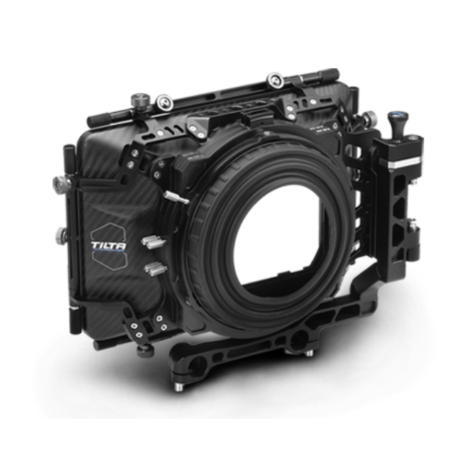 Diese 4×5,65 Karbonfaser-Mattbox verfügt über ein schwenkbares Design für einen einfachen Objektivwechsel.
