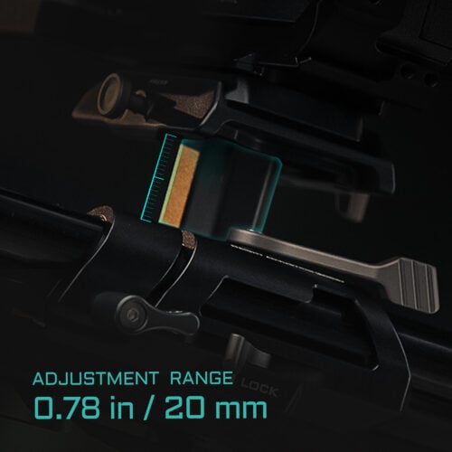 Der Abstand von der Mitte des Gestänges zum Arca-Empfänger reicht von 18 mm bis 38 mm und ist mit DJI-Standard-Arca-Platten kompatibel.