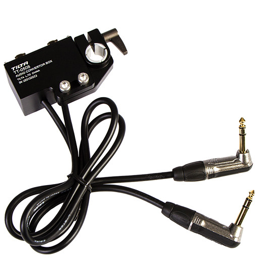 Der Tilta TT-0508 XLR-Audio-Konverter ist ein kompakter, auf einer Stange montierter passiver Adapter, der die Blackmagic Cinema Camera (EF/MFT) und die Blackmagic Production Camera 4K um zwei professionelle symmetrische XLR-Mikrofoneingänge erweitert, indem er diese in die nativen 1/4-Zoll-TRS-Buchsen der Kameras umwandelt – ideal für Außenaufnahmen, bei denen branchenübliche XLR-Mikrofone und -Kabel mit diesen frühen BMCC-Modellen verwendet werden müssen.