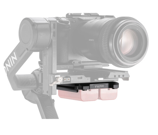 Mit der Tilta TGA-PPP-LS Dual-Batterieplatte können Sie Ihren DJI RS 4 Gimbal mit zwei Sony L-Serie-Batterien betreiben. Diese kabellose Dual-Batterie-Konfiguration wurde für die Verwendung mit der erforderlichen Pass-Through-Power-Platte entwickelt und senkt den Schwerpunkt des Gimbals, wodurch die Balance und Stabilität verbessert werden. Sie eignet sich ideal für professionelle Setups, einschließlich Tilta Hydra Alien- und Float-Systemen.