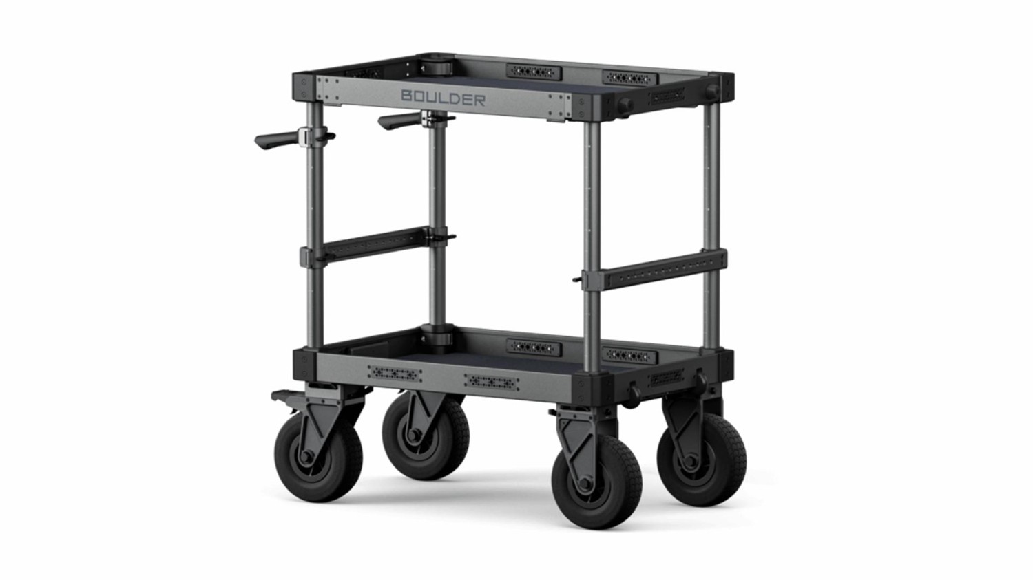 Der Boulder wurde mit Blick auf Vielseitigkeit und Komfort entwickelt und verfügt über ein werkzeugloses Schnellverschlusssystem, mit dem er sich im Handumdrehen auf- und abbauen lässt – perfekt für schnelllebige Sets oder ein Leben in Bewegung. Bei Nichtgebrauch lassen sich die oberen und unteren Ablagen des Wagens zu einem sicheren Hartschalenkoffer zusammenfügen, in dem die Komponenten sicher verstaut werden können. Ein integrierter Griff und kleine eingebaute Räder verwandeln die zerlegte Einheit in einen Rollkoffer, der den Transport zwischen verschiedenen Orten mühelos macht und sich leicht in kleinere Fahrzeuge laden lässt.