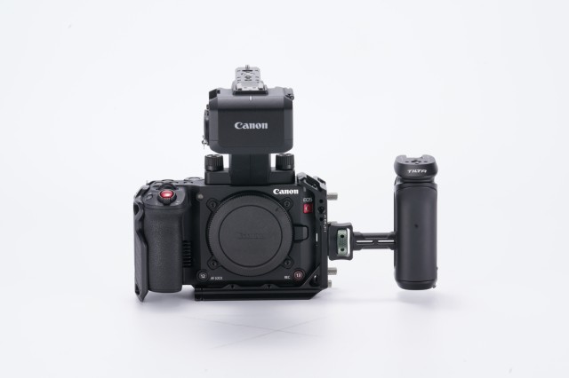 Die Basis dieses Sets von Tilta bildet ein Vollkamerakäfig, der so konzipiert ist, dass er zusätzlichen Schutz für das Gehäuse der Canon C50 bietet und den Benutzern die Möglichkeit gibt, verschiedene videobezogene Zubehörteile anzubringen.