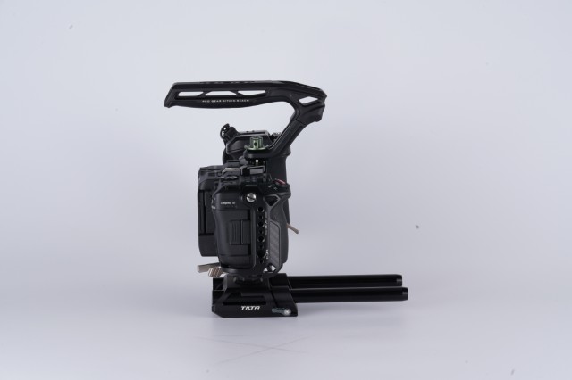 Der Käfig ist mit einer strapazierfähigen schwarzen Beschichtung versehen, die verschleiß- und korrosionsbeständig ist und eine lange Lebensdauer in anspruchsvollen Produktionsumgebungen gewährleistet. Sein unterer Teil verfügt über eine Arca-Swiss-kompatible Bodenplatte, die einen nahtlosen Übergang zwischen Stativen, Gimbals und anderen Stützsystemen mit Standard-Schnellwechselplatten ermöglicht.