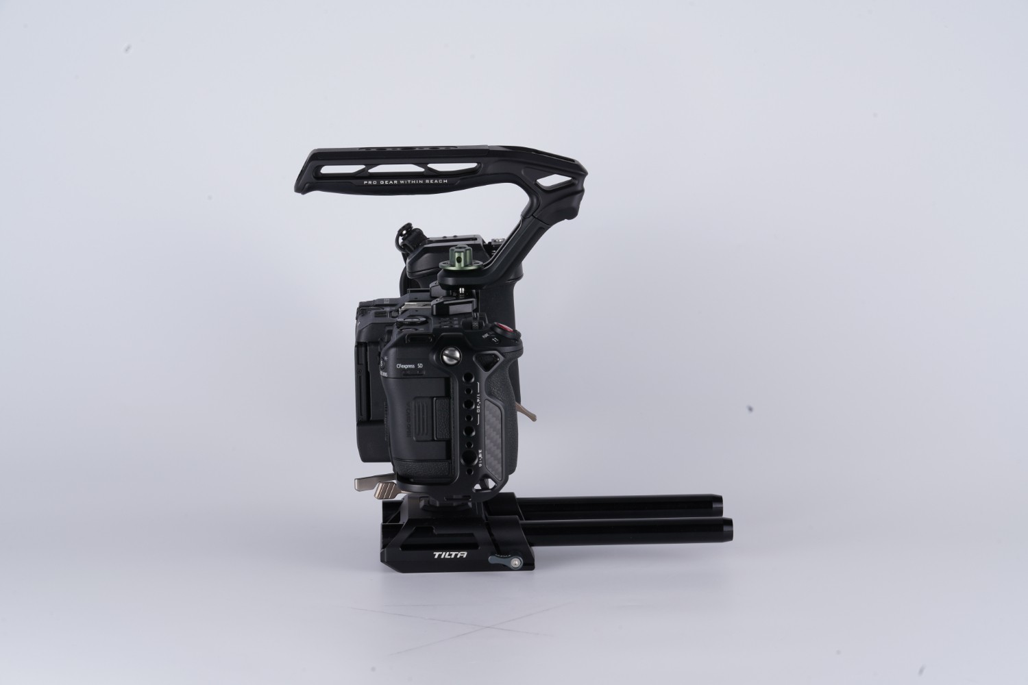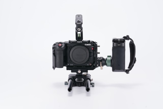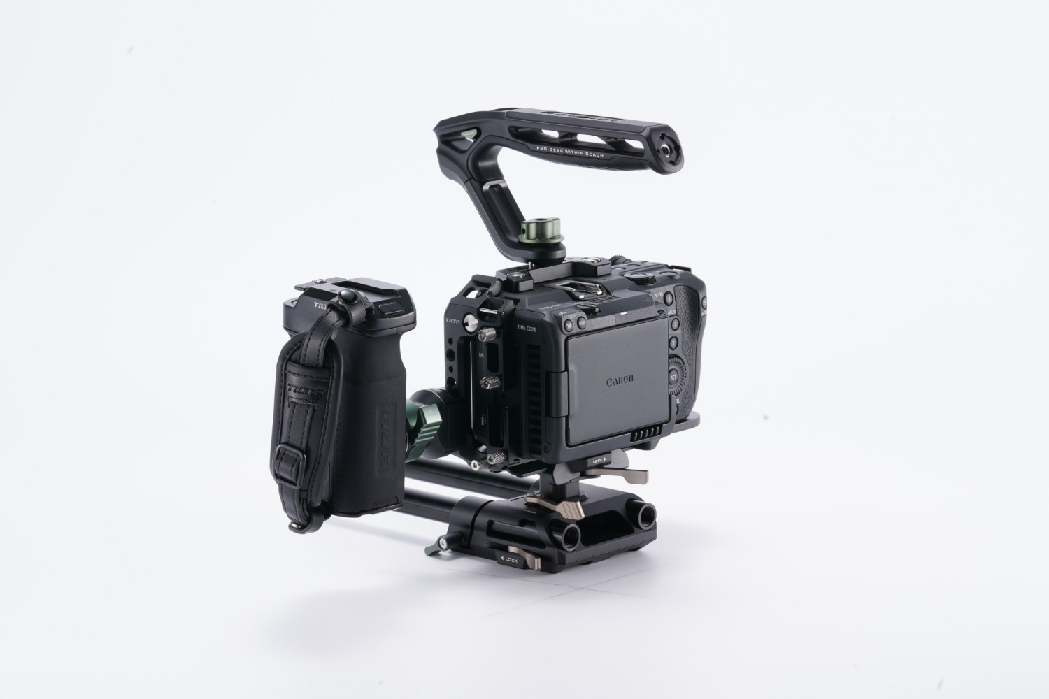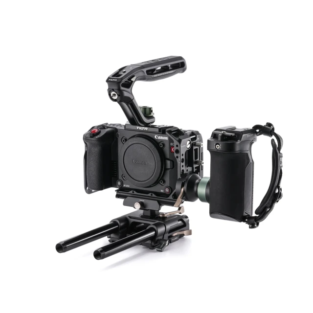 Die Grundlage dieses Kits ist der vollständige Kamerakäfig, der zusätzlichen Schutz für das Canon C50-Kameragehäuse bietet und es Benutzern ermöglicht, viele videobezogene Zubehörteile anzubringen. Drei Kontaktpunkte sorgen für eine sichere Verbindung und tragen zur Stabilität des Käfigs bei, wenn unter hohen Belastungen und in dynamischen Aufnahmeumgebungen gearbeitet wird. Dank seines modularen Designs lässt sich das Gerät leicht in einen Halbkäfig zerlegen, um kleinere und leichtere Aufbauten zu ermöglichen.