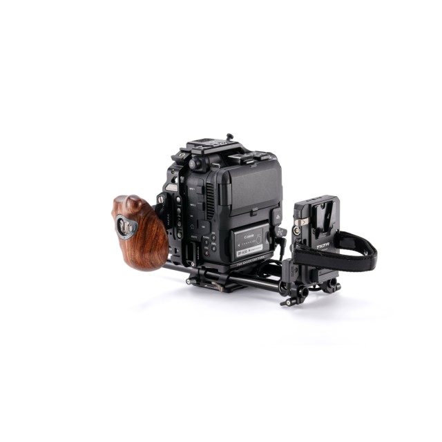 Ebenfalls im Kit enthalten ist eine Stromversorgungsplatte mit Kabel, die die Betriebszeit der C80 verlängert und es Ihnen ermöglicht, Zubehör über den 60-W-PD-USB-C-Anschluss, den P-Tap-Anschluss und den 2-Pin-Lemo-Anschluss zu betreiben. Mit einem dualen Stangenadapter kann diese Einheit leicht in Systeme mit 15-mm-LWS-Stangen integriert werden