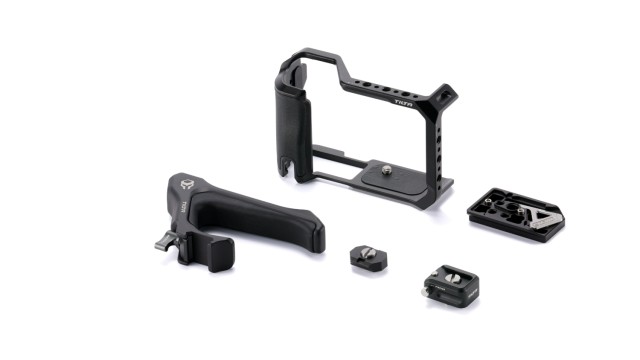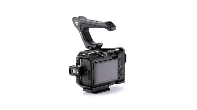 Das Design umfasst einen integrierten Griff mit Gummibeschichtung, der sich der Form Ihrer Handfläche anpasst, wodurch das Halten der Kamera in der Hand bequemer ist als mit einem herkömmlichen Käfig.