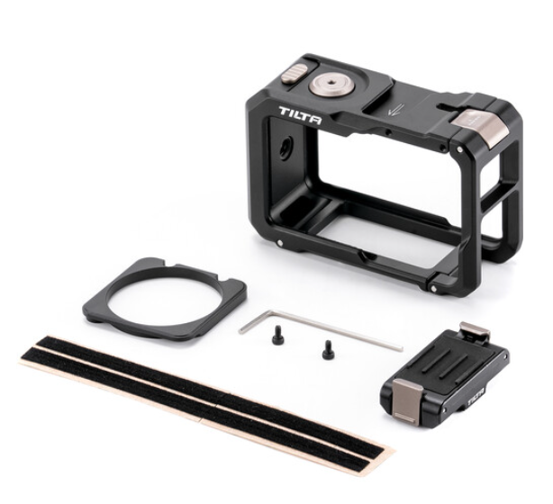 Der Tilta TA-T72-A-B Full Camera Cage mit magnetischer Montageplatte (schwarz) ist ein professionelles, aufnahmebereites Rig-System, das speziell für die DJI Osmo Action 5 Pro, Action 4 und Action 3 entwickelt wurde. Es kombiniert einen leichten und dennoch extrem robusten Käfig aus einer Magnesium-Aluminium-Legierung mit einer magnetischen Schnellwechsel-Grundplatte und einem Filteradapter und bietet vollständigen Schutz, ungehinderten Zugang zu allen Anschlüssen und Tasten, schnellen Batteriewechsel, mehrere Befestigungsoptionen und nahtlose Integration mit den magnetischen Action-Filtern von Tilta.