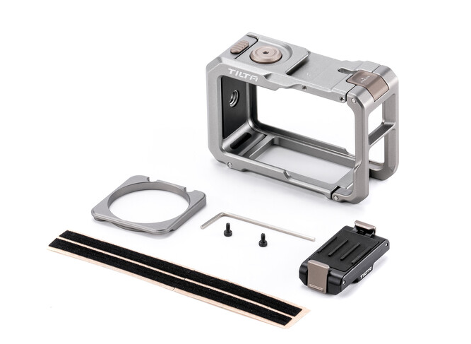 Der Tilta TA-T72-A-TG Vollkamera-Käfig mit Montageplatten-Kit (Titanium Grey) ist ein komplettes, aufnahmebereites modulares Rig für die DJI Osmo Action 5 Pro/4/3, das einen schützenden Magnesium-Aluminium-Käfig mit beidseitigem Schnellverschluss, magnetischer Tilta-Filterhalterung, oberem Blitzschuh, seitlichem 1/4"-20-Gewinde und einer magnetischen Schnellverschluss-Basisplatte kombiniert, die an der Unterseite oder an der Seite befestigt werden kann – alles in elegantem Titanium Grey für ultimative Haltbarkeit und Stil.