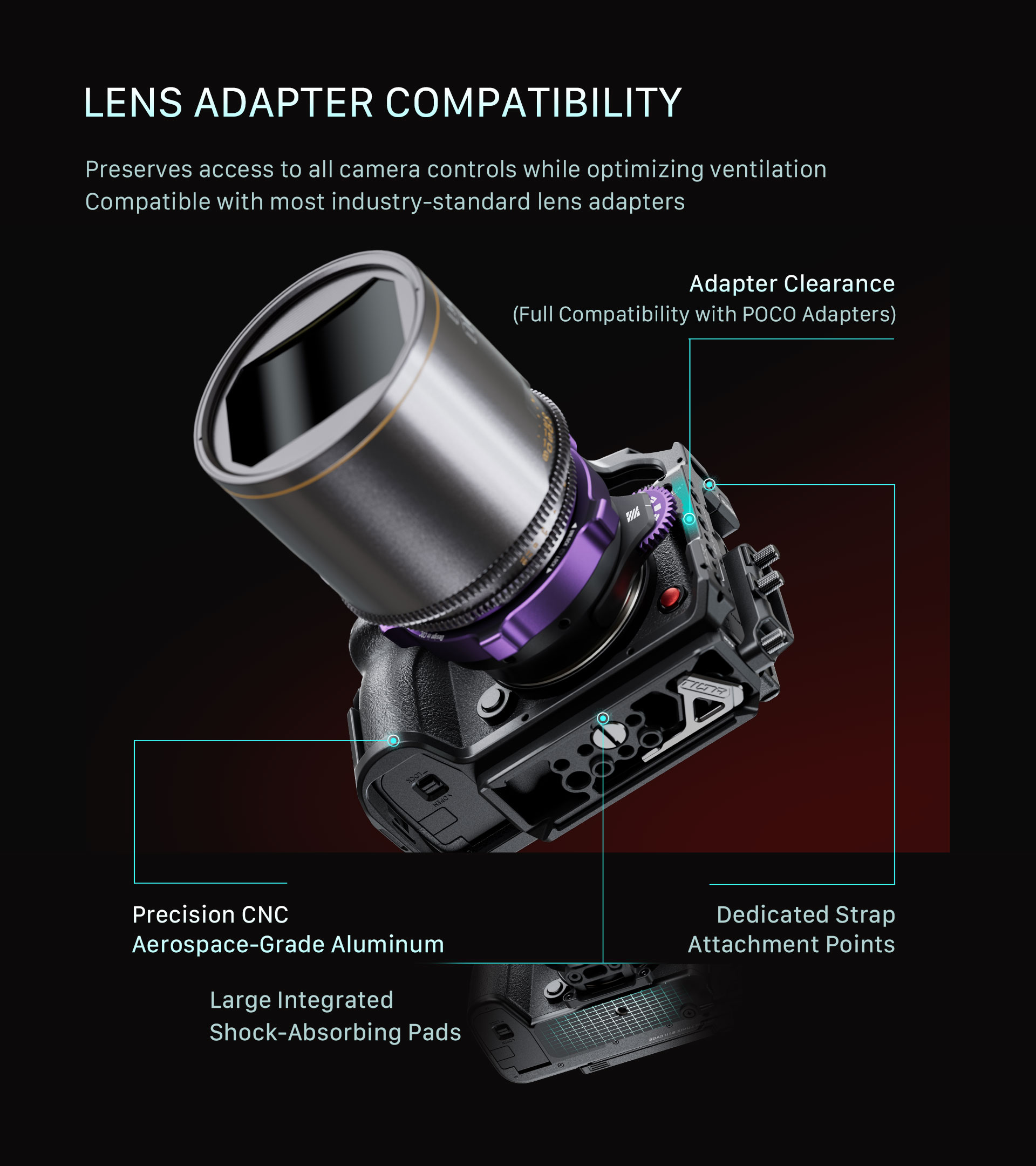 Die Grundlage dieses Kits ist der Vollkamerakäfig, der Schutz bietet und die Befestigungsmöglichkeiten für die S1R II, Lumix S5 II, S5 IIX und G9 II erweitert.