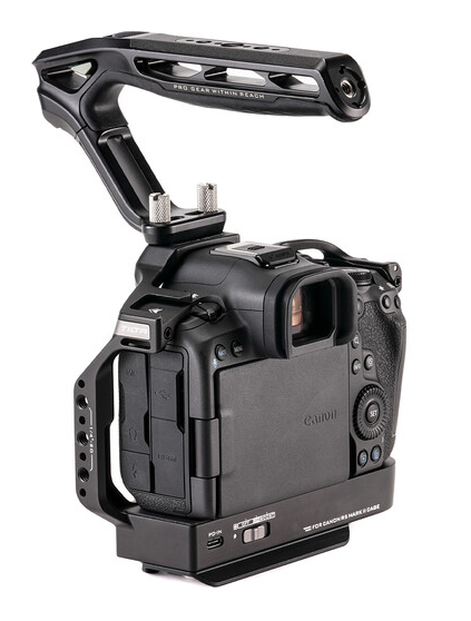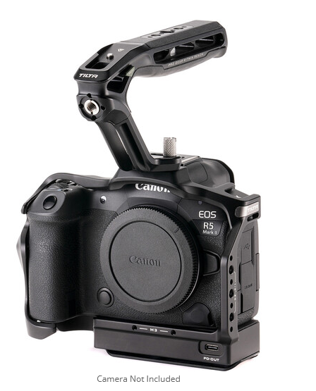Der TA-T68-A-B wurde speziell für die anspruchsvollen 8K/60p- und 4K/120p-Modi der Canon R5 Mark II entwickelt und ist eine 3-in-1-Lösung: aktive Kühlung + Erweiterungskäfig + Schutz. Der integrierte Lüfter mit variabler Drehzahl (leise bei niedriger, leistungsstark bei hoher Drehzahl) hält die Sensortemperaturen bei langen Aufnahmen oder in heißen Umgebungen automatisch unter Kontrolle und wird über eine einzige USB-C-PD-Quelle (30 W) mit Strom versorgt. Der Cage selbst besteht aus ultraleichtem, aber dennoch stabilem Aluminium mit weichen Silikonkontaktpunkten, uneingeschränktem Zugriff auf Tasten/Anschlüsse und Dutzenden von verdrehsicheren Gewinden sowie Kaltschuhen. Eine Arca-Swiss-Schnellwechselplatte ist in die Basis integriert, und der mitgelieferte Xeno-Top-Handgriff bietet einen komfortablen Silikongriff, zusätzliche Befestigungspunkte und einen Kaltschuh für Mikrofone oder Leuchten. Mit einem Gesamtgewicht von nur 241 g ist dies die intelligenteste Möglichkeit, die R5 Mark II den ganzen Tag lang ohne Drosselung zu betreiben.