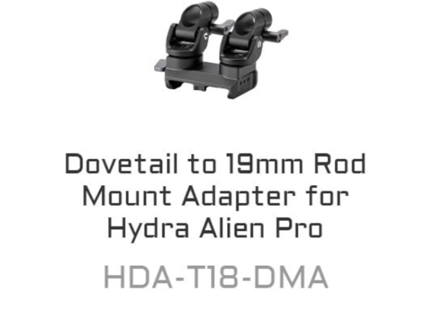 Der Tilta HDA-T18-DMA Adapter von Schwalbenschwanz zu 19-mm-Stangenhalterung ist eine robuste Brücke aus Space Grey-Aluminium, die die ARRI-Standard-Schwalbenschwanzbasis des Hydra Alien Pro Shock Absorbing Arm in eine felsenfeste 19-mm-Studiostangenhalterung verwandelt, sodass Sie den Arm mit einer Tragkraft von 20 kg direkt auf einer 19-mm-Speed-Rail, Gerüst oder jedes andere 19-mm-Rohr befestigen können, um eine extrem stabile Überkopf-, Seiten- oder individuelle Fahrzeugbefestigung zu erzielen.