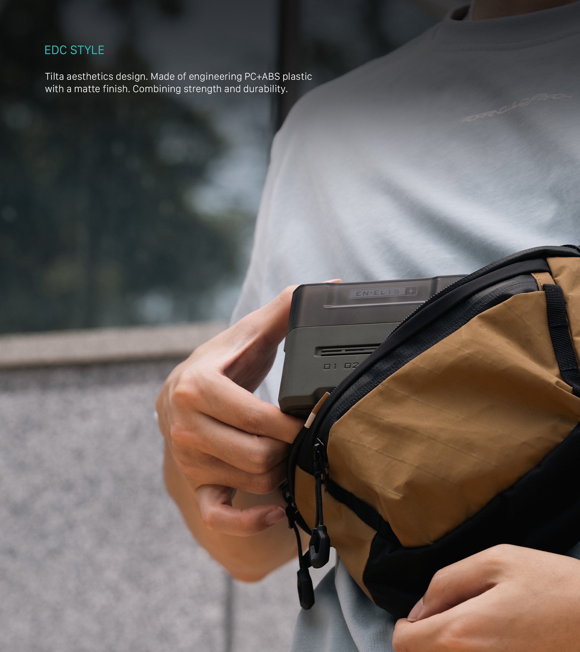 Die tragbare Ladestation von Tilta zeichnet sich durch ein EDC-ähnliches Design mit der charakteristischen Ästhetik von Tilta aus und ist eine stilvolle und funktionelle Ergänzung Ihrer Ausrüstung.