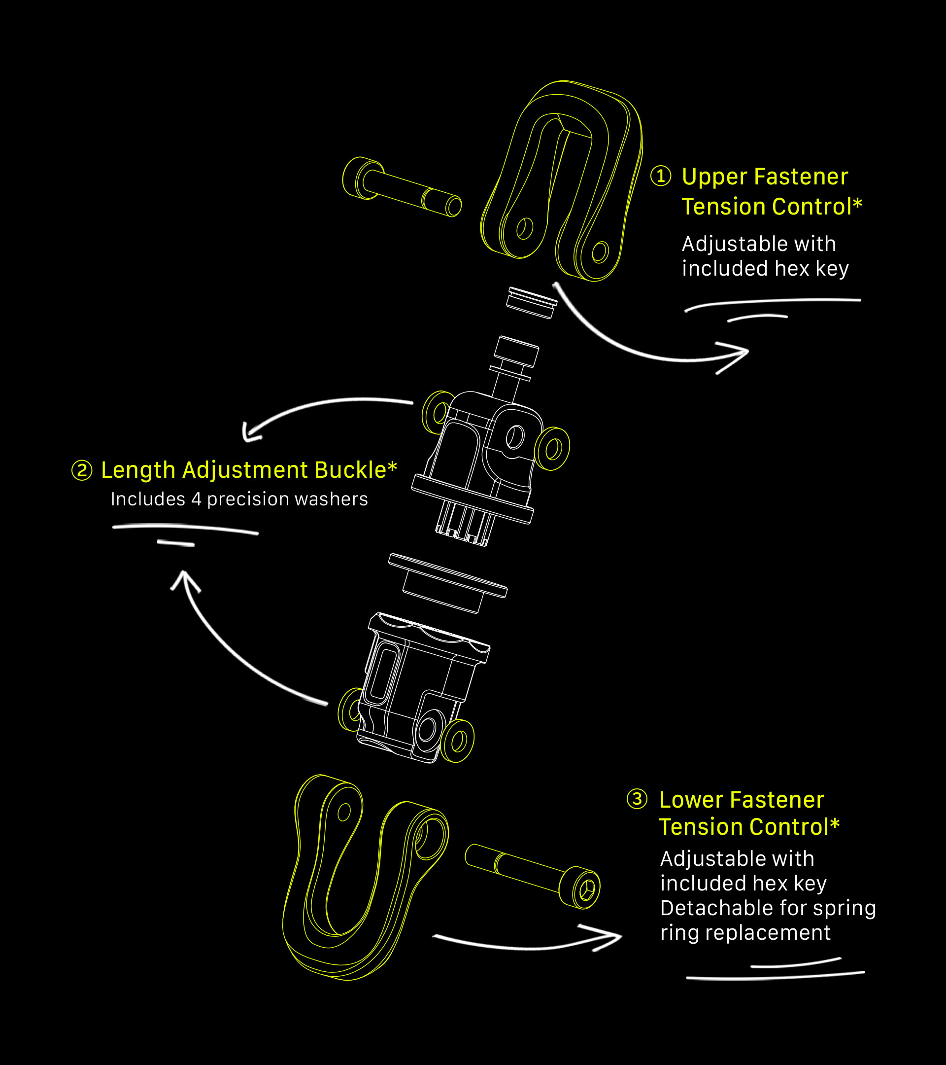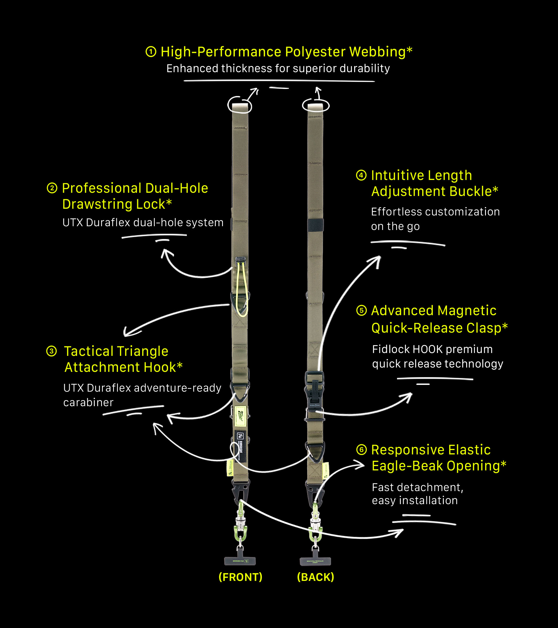 Eine intuitive Schnalle ermöglicht eine einfache und schnelle Längenanpassung für verschiedene Konfigurationen, und fortschrittliche magnetische Schnellverschlüsse nutzen die Fidlock HOOK-Schnellverschlusstechnologie für extreme Flexibilität.
