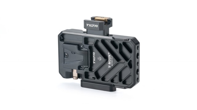 Diese V-Mount-Akkuplatte wird an der Basis des Pfostens des Tilta Float-Systems befestigt, um Ihr Gimbal-Setup mit Strom zu versorgen. Zwei V-Mount-Akkuplatten können an der Platte angebracht werden (eine auf jeder Seite) und sie wird über eine sehr einfache NATO-Schienenverbindung am Pfosten befestigt.