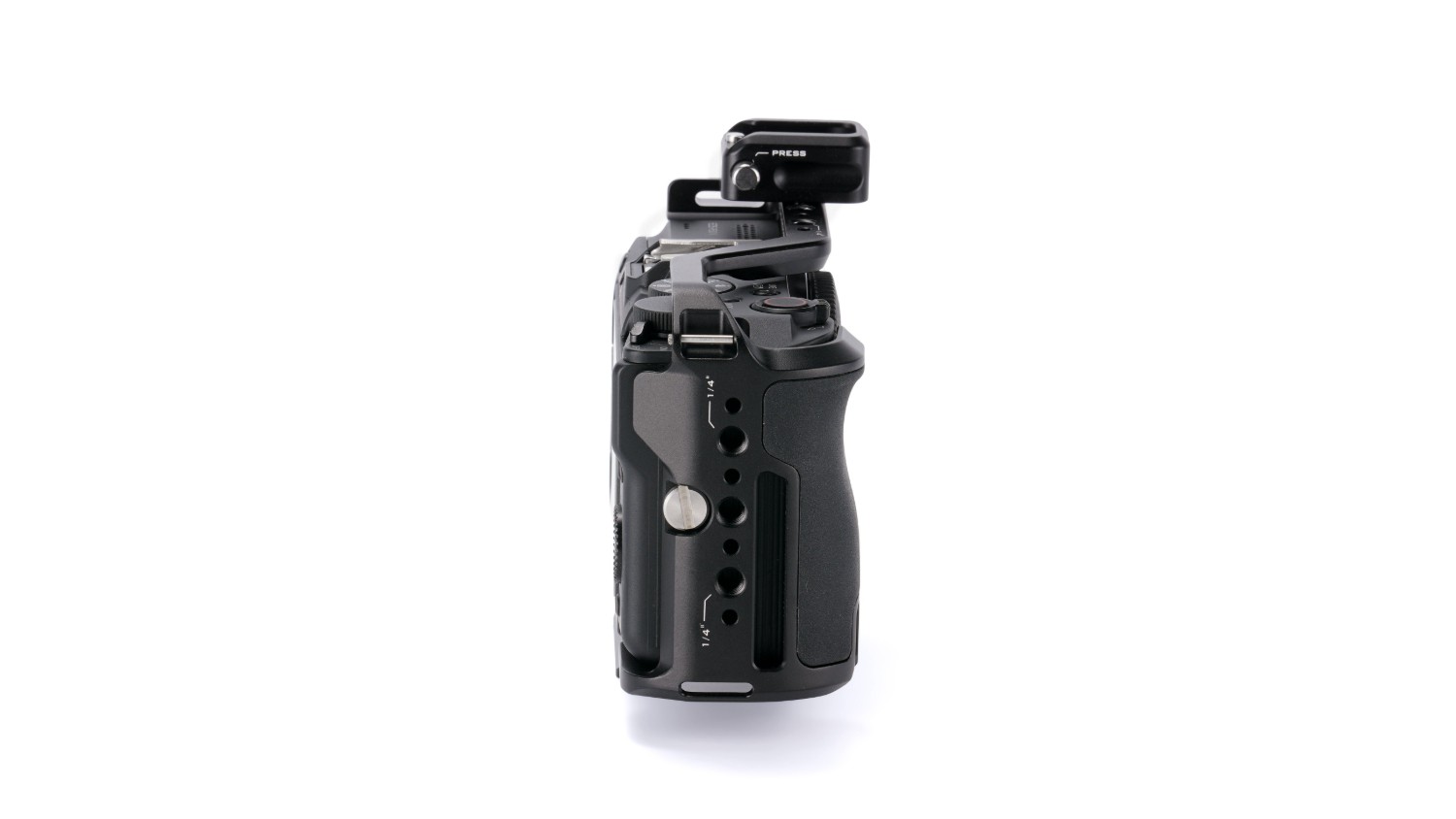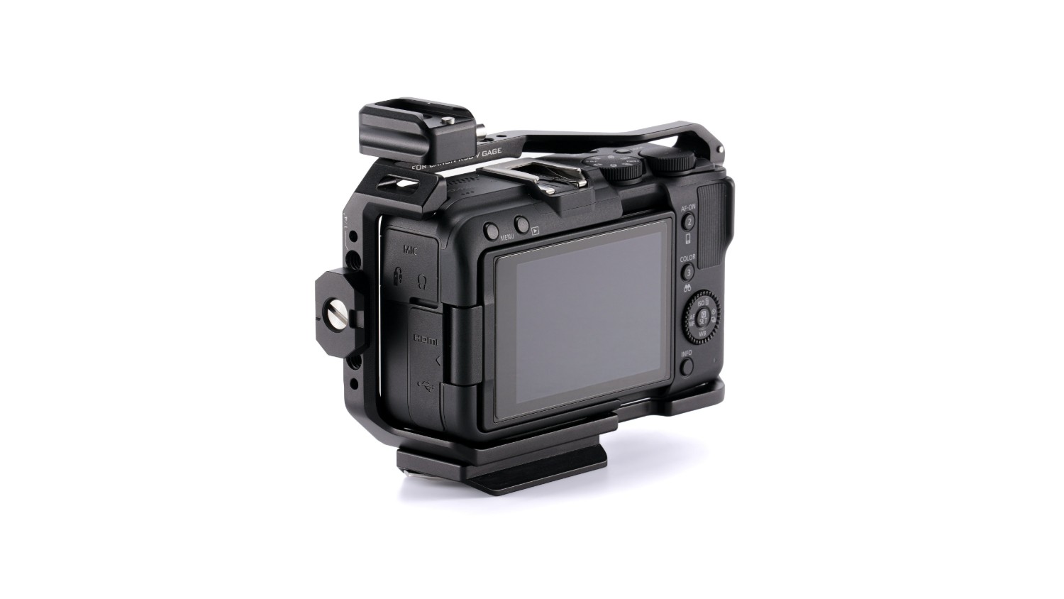 Der Käfig ermöglicht weiterhin einen einfachen Zugriff auf alle wichtigen Kamerafunktionen, sodass Sie ungehinderten Zugang zu den Kameraanschlüssen, Bedientasten und dem Batteriefach haben, ohne den Käfig entfernen zu müssen.