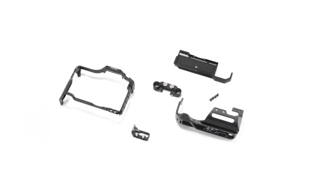 Der Käfig enthält Komponenten zur Verlängerung der Bodenplatte, um diesen Batteriegriff zu unterstützen, und die mitgelieferte 15-mm-Stabhalterung ermöglicht die Montage von LWS-Stäben in der exakten optischen Mitte, die für die korrekte Ausrichtung der Mattebox erforderlich ist.