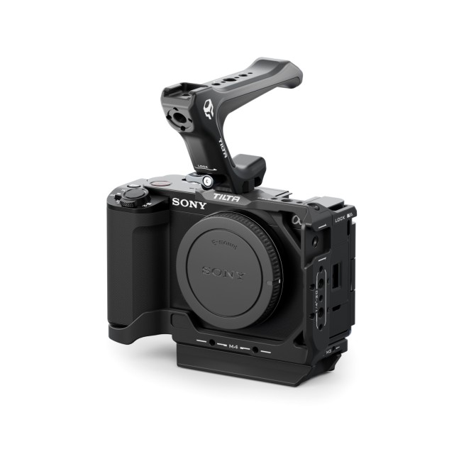 Halber Kamerakäfig für Sony ZV-E1 Lightweight Kit. Dieser Halbkäfig unterstützt eine breite Palette an externem Zubehör und benötigt dabei nur eine geringe Stellfläche, da er über mehrere Befestigungsoptionen verfügt, darunter einen Cold Shoe-Empfänger, eine NATO-Schiene, M3-Gewinde für Objektivträger und ¼"-20-Gewinde mit Fixierpunkten.