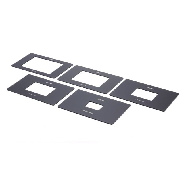 Das Kit enthält feste Blenden in verschiedenen Größen für unterschiedliche Brennweiten. Die Blenden lassen sich schnell und sicher in das Gehäuse der Mirage Pro Matte Box einrasten.