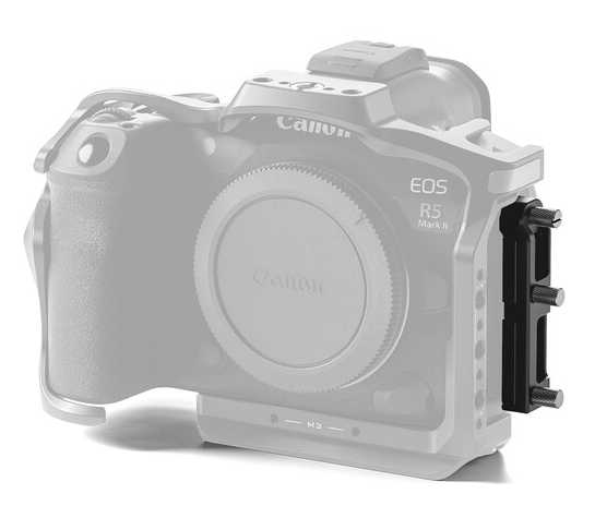 Entwickelt, um eines der häufigsten Probleme der Canon R5 Mark II zu lösen – lose oder sich lösende Kabel während Videoaufnahmen oder Gimbal-Arbeiten – klemmt der TA-T68-CC-B gleichzeitig den Full-Size-HDMI- und den USB-C-Anschluss fest. Das Zweikanal-Design hält die Kabel fest und dennoch schonend (keine Beschädigung der Anschlüsse) und lässt sich mit einer großen unverlierbaren Schraube handschuhfreundlich einstellen. Mit drei Rändelschrauben wird die Klemme direkt an speziellen Punkten an den Voll- oder Halbkäfigen der R5 Mark II von Tilta befestigt, sodass alles bündig und professionell aussieht.