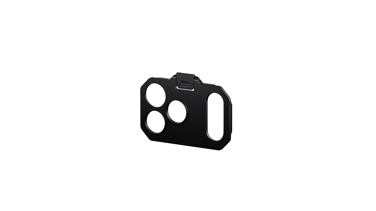 Sicheres Schnellverschluss-Design: Entwickelt für den schnellen und sicheren Anschluss an Ihr Khronos Ecosystem-Gehäuse. Der Adapter lässt sich in den dafür vorgesehenen Schlitz über der Kamera des iPhones einschieben und arretieren.