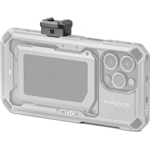 Mit dem Tilta Khronos Cold Shoe Quick Release Adapter in Space Grau können Sie herkömmliches Kamerazubehör mit dem Khronos Case an Ihrem iPhone 15 Pro oder Pro Max befestigen. Er lässt sich über eine Verriegelungsklemme sicher befestigen und bietet eine vielseitige Lösung zur Erweiterung Ihrer mobilen Filmemacherkapazitäten.