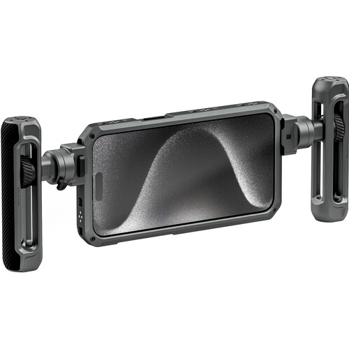 Das Tilta Khronos iPhone 15 Pro Max Lightweight Kit in Space Gray wurde für das mobile Filmen entwickelt und umfasst eine Khronos-Tasche und einen verstellbaren Griff. Es fügt sich nahtlos in das Khronos-Zubehör-Ökosystem ein und verfügt über ein 4-Schrauben-Gehäuse zum Schutz, eine Verriegelungsklemme mit neun Befestigungspunkten und elektronische Kontaktpunkte für die Stromversorgung. Der Griff ist höhenverstellbar, um 180° drehbar, hat oben und unten ein 1/4"-20-Gewinde und ist mit einem bequemen Silikongriff ausgestattet, der die Bedienung erleichtert.