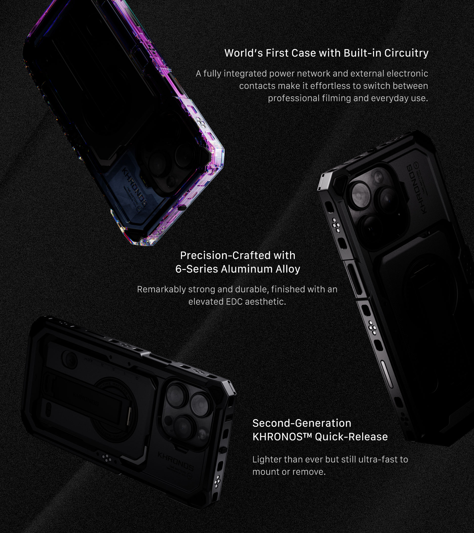 Erleben Sie das Filmemachen wie nie zuvor mit dem Khronos iPhone 16 Pro / Pro Max Case - wo Innovation auf Leidenschaft trifft.