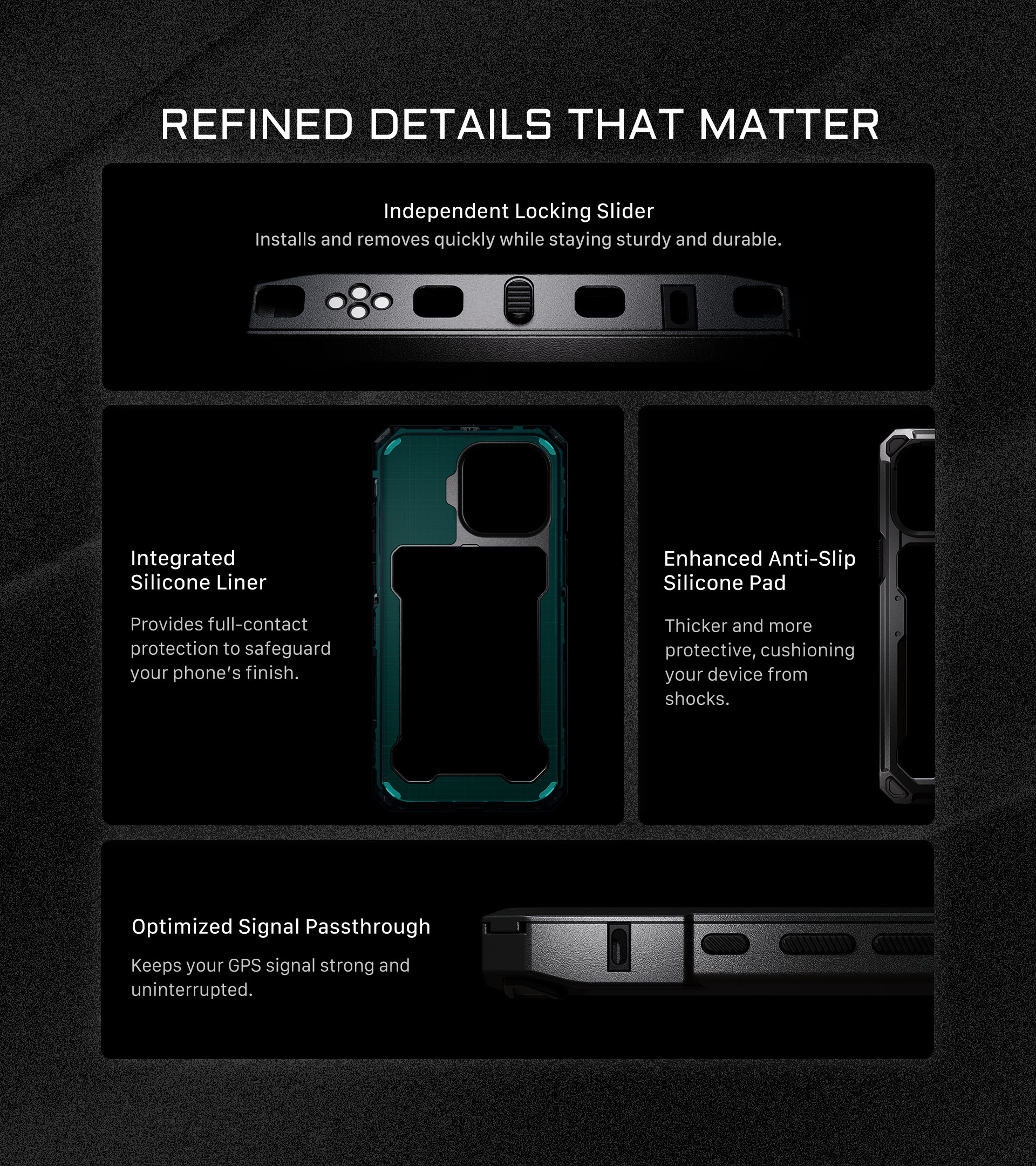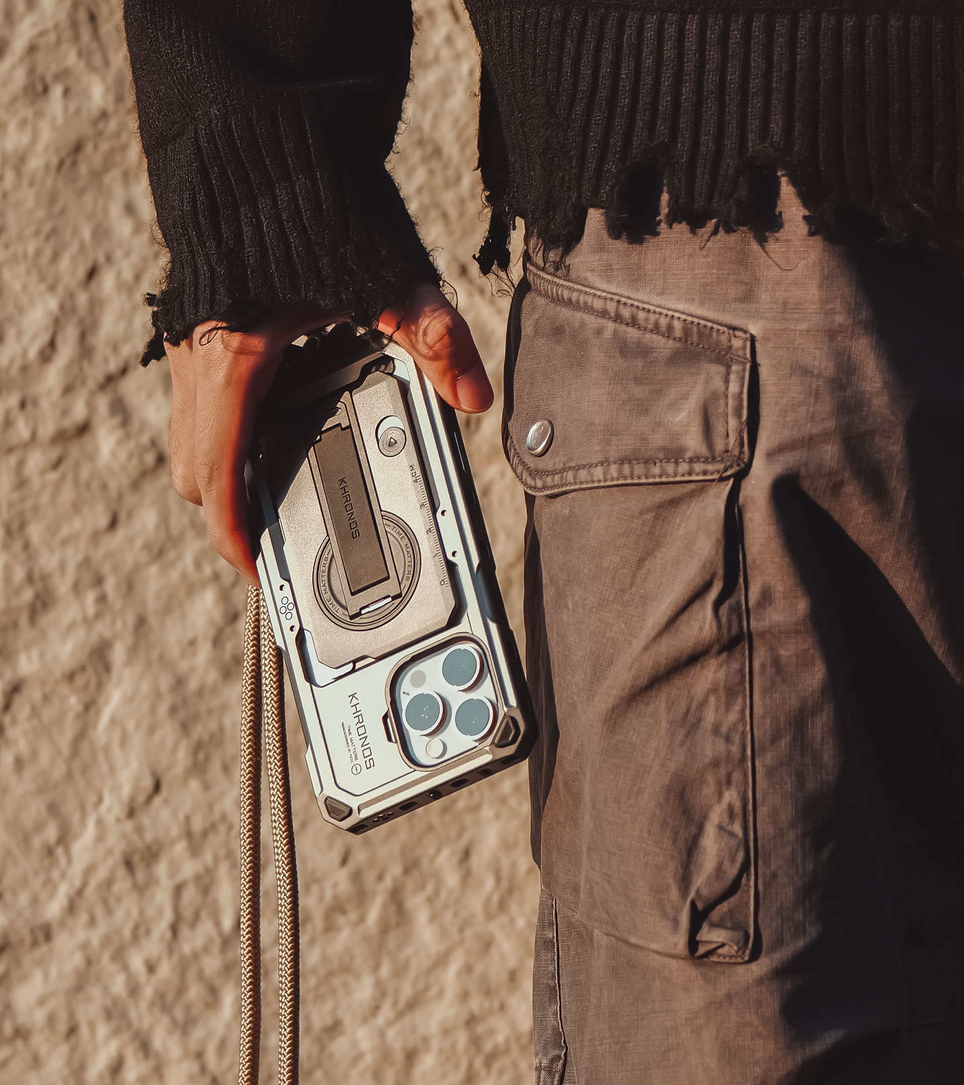 Diese von einem Kamerakäfig inspirierte Smartphone-Hülle wurde speziell für das iPhone 16 entwickelt und bietet eine unvergleichliche Mischung aus Funktionalität und Eleganz: Die Khronos-Hülle schützt Ihr Telefon zuverlässig vor täglicher Abnutzung, ohne dabei Kompromisse bei Stil oder Funktionalität einzugehen.