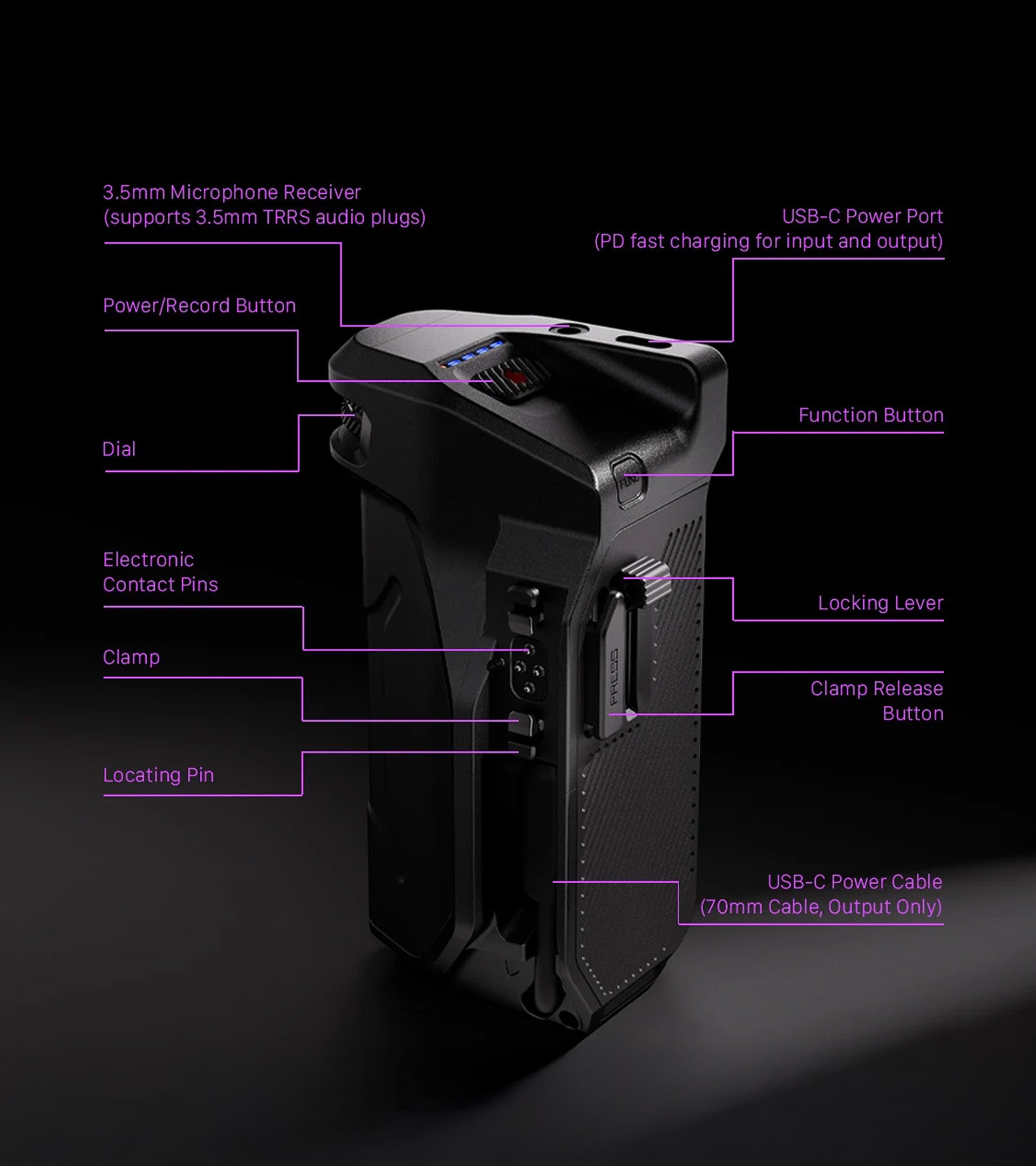 Der Griff wird über ein integriertes USB-C-Kabel an ein iPhone 16 angeschlossen und nutzt Bluetooth, um den Fokus oder Zoom über das Rad an der Vorderseite des Griffs zu steuern. Dies sorgt auch für mehr Stabilität bei der Bedienung des Systems und die Aufnahmetaste stellt sicher, dass der Benutzer den Handgriff nicht loslassen muss, um die Aufnahme zu starten.