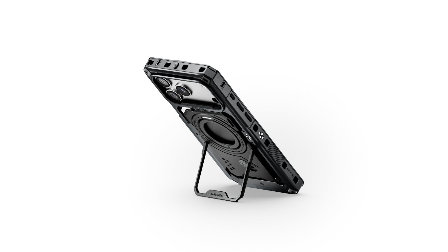 Die Khronos iPhone 17 Pro Max Hülle (schwarz) bietet professionellen Schutz und Rigging-Funktionen und verwandelt Ihr Smartphone nahtlos in ein kinotaugliches Kamerasystem. Das elegante schwarze Finish ergänzt das Design des Telefons und verbessert gleichzeitig die Funktionalität.