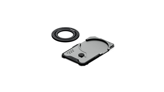 Die multifunktionale magnetische Rückplatte von Tilta Khronos in Space Gray ist ein vielseitiges Zubehörteil für die Modelle iPhone 15, 16 und 17 Pro/Pro Max. Sie bietet eine magnetische Verbindung, für die keine Hülle erforderlich ist, einen verstellbaren Ständer für eine stabile horizontale und vertikale Positionierung und Kompatibilität mit anderem magnetischem Zubehör, wodurch das mobile Filmen und die alltägliche Nutzung des Smartphones verbessert werden.