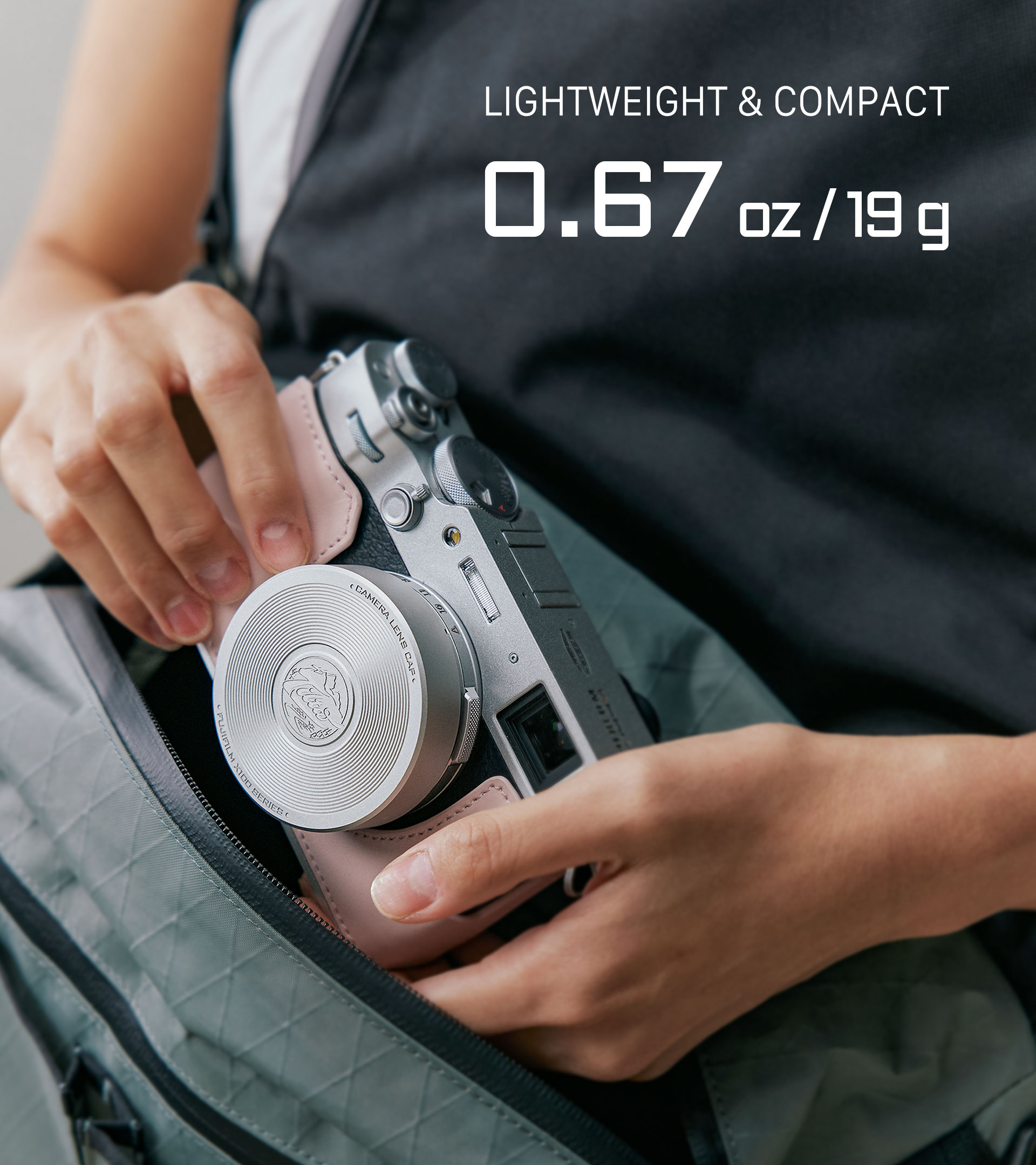 Mit einem Gewicht von nur 19 g (0,67 oz) ist dieser leichte und dennoch robuste Deckel so konzipiert, dass er nahtlos auf das Objektiv Ihrer Kamera passt und es schützt.