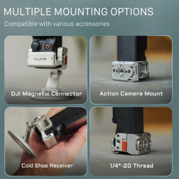 Das Tilta Magnetic Accessory Mounting Kit für DJI Osmo Pocket 3 bietet vielseitige magnetische und mechanische Befestigungsmöglichkeiten mit mehreren Befestigungspunkten für Zubehör, uneingeschränktem Zugang zur Kamera und flexibler Positionierung – alles in einem eleganten titanweißen Finish. Dieses Kit ist ideal für Kreative, die eine kompakte und dennoch äußerst anpassungsfähige Befestigungslösung benötigen, und bietet erstklassige Vielseitigkeit mit einer klaren, modernen Ästhetik.