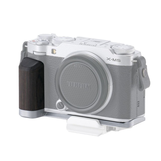 Dieses L-förmige Zubehörteil verfügt über einen Griff aus Walnussholz, der die Handhabung und das Halten der Fujifilm X-M5 erleichtert.