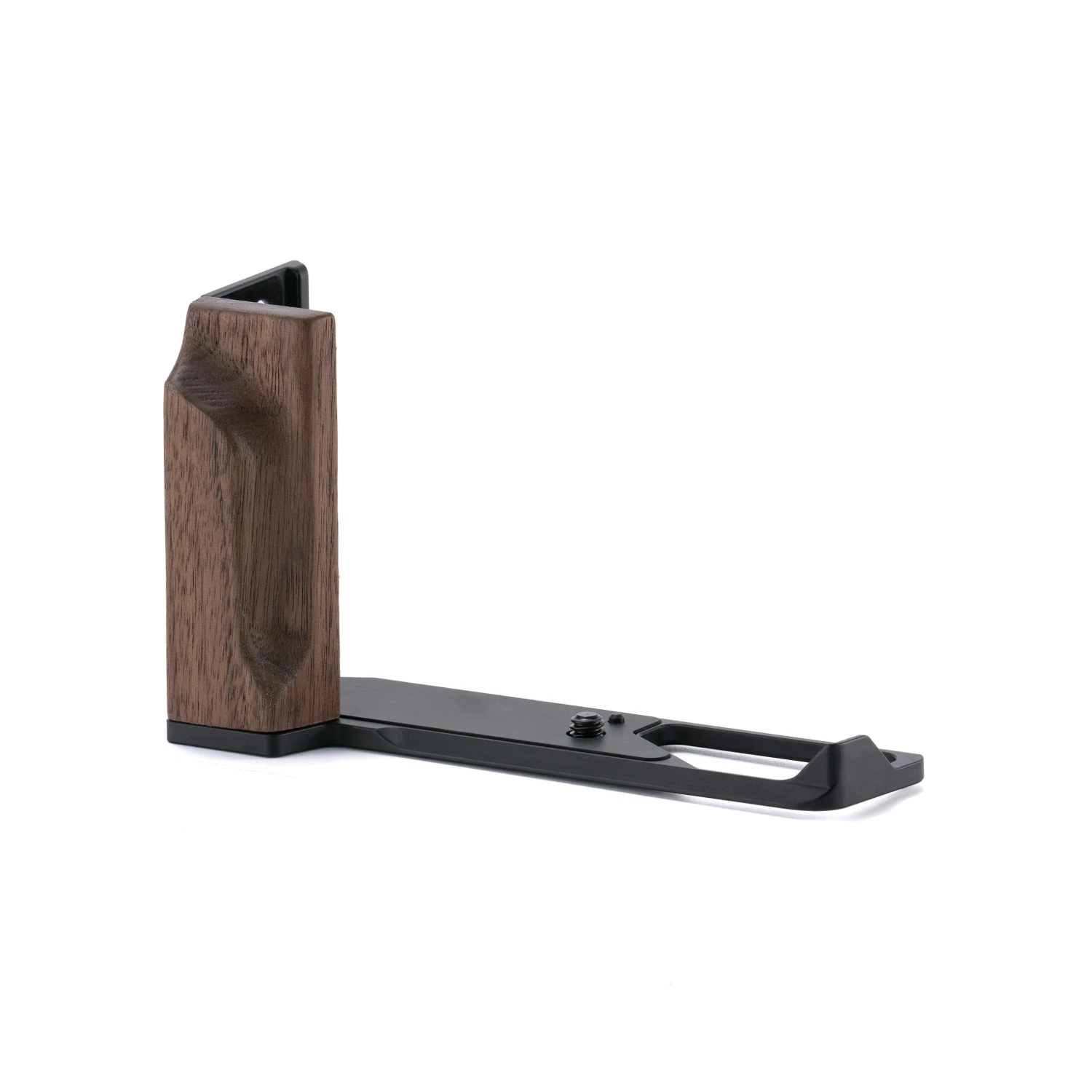 Wir stellen vor: die Montageplatte mit Holzgriff für die Sigma BF. Die Basis dieses L-förmigen Zubehörs ist ein Handgriff aus Walnussholz. Dieser sorgt für eine komfortablere Bedienung und Handhabung der Kamera, während sie gleichzeitig kompakt und reisefreundlich bleibt.